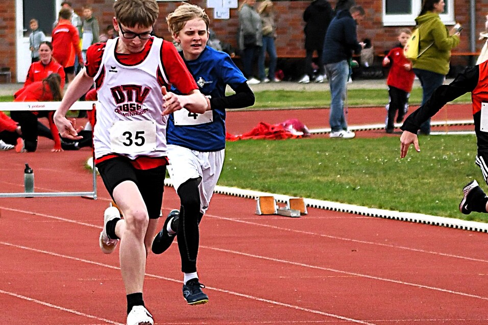 Mit dabei vier unserer Jüngsten. Leider musste kurzfristig der elfjährige Jonno Djuren aufgrund einer Fußverletzung absagen. Und unser Jüngster, der noch siebenjährige Jannik Gädje ließ es gleich richtig krachen. Im Schlagballwurf war er mit seinen geworfenen 21 Meter nicht zu schlagen. Im 50 Meterlauf wurde er Zweiter. Auf den dritten Rang kam in der AK M11 Lukas Lensche im 50 Meter Lauf. Für Jonas Borks lief es in der Ak M10 hingegen nicht so gut. Im 50 Meter Lauf landete er in 8,64 Sekunden auf dem undankbaren vierten Rang, im Weitsprung kam er auf 3,36 Meter, das war am Ende Platz sechs. Auch im Schlagballwurf blieb er mit seinen 26 Meter unter seiner in der Woche zuvor erzielten Bestweite (30 Meter), was ihm ebenfalls den sechsten Platz einbrachte. „Man darf von unseren Kindern nicht erwarten, dass sie jede Woche neue Bestleistungen aufstellen“, sagte DTV Trainerin Alina Eze, die sich dennoch mit den Leistungen ihrer Schützlinge sehr zufrieden zeigte. Der zehnjährige Moritz Themann vor einigen Wochen mit der DTV Staffel über 3x800 Meter in der Ak U14 Regionsmeister wurde im 800 Meter Lauf in 3:34,32 Minuten Sechster.